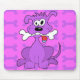 Un ilustracion de la diversión de un perrito púrpura que sostiene un hueso de perro en su boca mientras que menea feliz en la anticipación. Un gran mousepad para los amantes del perro.