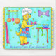 "Una sorpresa para la cena" presenta al Chef Dog arreglando una sorpresa, un hueso envuelto con una vela, listo para servir. ¿Es por un cumpleaños o solamente una sorpresa especial? ¡Depende de ti! La expresión de Chef Dog muestra orgullo mientras sirve a la sorpresa. Un reloj morado en forma de hueso cuelga en la pared con un rack de macetas y sartenes. El papel de envoltura de fucsia se inclina contra la pared y una mesa contiene cinta y un tazón azul. El fondo es de color turquesa con huellas de pata verde y tiene un borde amarillo con puntos azules.