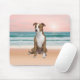 Alfombrilla De Ratón Perro de Pitbull lindo sentado en la playa con pue