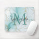 Alfombrilla De Ratón Personalizado Elegante Monograma Aqua Marble
