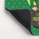 Mousepad con un Ilustracion de un leprechaun sonriente vestido con un traje verde, corbata de arco y un gorra de bolos sentado dentro de una olla de oro y sosteniendo una pinta de cerveza, con un arco iris amarillo, verde y naranja al fondo. La imagen se coloca sobre un fondo verde oscuro y sin fisuras con rocas de champú. ¡Un diseño perfecto para celebrar el Día de San Patricio!