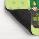 Mousepad con un Ilustracion de un leprechaun sonriente vestido con un traje verde, corbata de arco y un gorra de bolos sentado dentro de una olla de oro y sosteniendo una pinta de cerveza, con un arco iris amarillo, verde y naranja al fondo. La imagen se coloca sobre un fondo verde claro y sin fisuras con rocas de champú. ¡Un diseño perfecto para celebrar el Día de San Patricio!