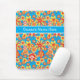 Un Mousepad de bonito a personalizar, con un patrón de flores tibias en naranja, amarillo y rojo sobre un fondo azul turquesa, de un collage de papel pintado a mano de Judy Adamson.