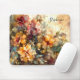 Enhance your desk with this romantic watercolor mouse pad of orange, yellow, pink, and red flowers on a beige-blue-green background. Add your name or message for a vibrant, custom touch, ideal for floral lovers seeking creative workspace style.