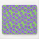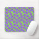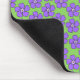 Esta almohadilla del ratón tiene un diseño primaveral de un campo de flores periwinkle sobre un fondo verde.