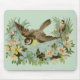 Verano en una escena de estanques, con pájaros volando y flores de bonito floreciendo.