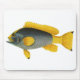 Ilustración antigua de diseño de vida marina acuática del océano con un pez mero azul y amarillo. Las aletas dorsal y pectoral son amarillas, al igual que la cola. A veces llamados róbalos.