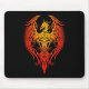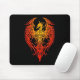 Este diseño de Phoenix del rojo y del amarillo se adorna con remolinos y modelos de punto tribales que fluyen. Las alas simétricas extienden hacia fuera de cada lado del modelo mientras que cae la cola abajo el centro que forma un punto en la base. Se destacan las líneas intrépidas que crea un brillo sutil en la superficie. Esta Phoenix agresiva con todo elegante se sienta en un fondo negro puro que cree un diseño hermoso y elegante del mousepad.