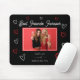 Photo Best Friends Forever Black and Red Hearts Mouse Pad. Cherish your closest friendship with this beautifully designed mousepad. The design prominently features the phrase "Best Friends Forever" in a delicate white font, accentuated by a delightful arrangement of red and white hand drawn style hearts scattered across a sophisticated black background. A central photo frame invites you to place a special picture of you and your friend, capturing a moment in time. Below the photo, personalize it further with your names, creating a unique testament to your bond. This mousepad not only serves a functional purpose but also acts as a constant reminder of your cherished connection, adding a personal touch to any desk.