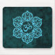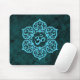 OM azul claro diseña se sienta dentro de una flor de loto estilizada. Una sombra cae sobre el fondo texturizado piedra que hace la flor aparece flotar apenas sobre la superficie del modelo. Seis hojas elegantes alcanzan hacia fuera del centro del diseño para crear un modelo simétrico hermoso. Este diseño elegante de la yoga es una representación llamativa de este símbolo espiritual.