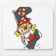 ¡Un muchacho rubio del pirata con una bandera, un diseño lindo del pirata para los niños que aman a piratas!