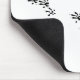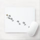 Modelo negro del pawprint (conclusión con un pedazo mordiscar-en de la comida!) que corre diagonalmente a través del mousepad.
