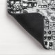 Un diseño basado en una foto blanco y negro de una placa de circuito.