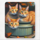 En la foto se ven tres gatos jengibre en el portador de una olla.
