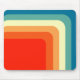 Esta almohadilla de ratón tiene un diseño de los años 70 de cuadrados concéntricos en tonos retro de azul, blanco y naranja.