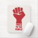 Esta obra de arte muestra un puño rojo levantado y las palabras Poder para el Pueblo.