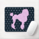 Se aplica un caniche rosa claro muy difuso sobre un azul oscuro con fondo de tela de polika blanco. Diseño de estilo retro de los años 50.
