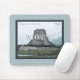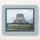 Una pintura digital de la Torre de los Diablos y un rebaño de bisontes pastando cerca de un río, con árboles dispersos en la base de la torre geológica y colinas onduladas en el fondo. Esta no es una escena de paisaje real en Wyoming. Este cuadro se hizo a partir de dos de mis fotografías. En letras blancas, a través del centro de la pintura está "Wyoming". En la parte superior está el lema del Estado, "Estado de la igualdad", y el año de la condición de Estado, "1890". El cuadro tiene un borde azul oscuro. Derechos reservados ©2023 Kimberly J Tilley.