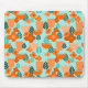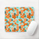 Esta almohadilla de ratón tiene un diseño escandinavo de flores y hojas en varios matices de naranja y verde azulado.