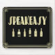 Una etiqueta de vino de diseño art deco que dice speakeasy y está decorada con botellas de licor. Un diseño que define la enconada prohibición de los años 20. Hecho en negro y oro.