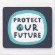 Este diseño presenta la frase "Proteja nuestro futuro" en letras modernas sobre fondo blanco.