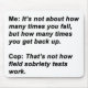 Por el amante del sarcasmo en todos nosotros. Echa un vistazo a este ingenioso "Yo: No se trata de cuántas veces te caes, sino de cuántas veces te recuperas. Cop: Así no funcionan las pruebas de seguridad de campo". Diseño de prendas y regalos.