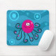 Natación enrrollada del pulpo del dibujo animado en las olas oceánicas con las burbujas de aire retras.