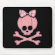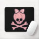 Emblema rosado del cráneo del chica lindo y del pirata de la bandera pirata con el arco del lunar y el apenamiento del medio. Camisetas, sudaderas con capucha, tarjetas, regalos.
