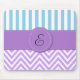 Alfombrilla De Ratón Púrpura Zigzag, Chevron, franjas azules, monograma