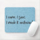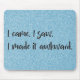 Añade un toque divertido a tu oficina o espacio de trabajo con un Purpurina azul "lo hice incómodo" Mousepad. El diseño de Mousepad incluye el texto "He venido. Vi. Lo hice incómodo". En una letra manuscrita con un brillante fondo azul purpurina. Artículos de regalo adicionales disponibles con este diseño así como una variedad de colores.