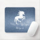 Agregue un toque elegante al área de trabajo de su equipo con una almohadilla de ratón personalizada Unicorn de Purpurina azul. El diseño de la almohadilla del ratón presenta un unicornio que camina sobre una estrella con un fondo purpurina. También hay artículos adicionales disponibles con este diseño.