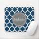 Alfombrilla De Ratón Quatrefoil azul y gris de la Marina Monogramada