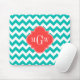 Alfombrilla De Ratón Quatrefolios de coral de Chevron blanco verde azul