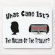 ¿El perfil del Hillbilly que se divertía un salmonete perfecto de la imagen con frase, "qué vino 1r? El salmonete o el remolque?" escrito por encima y por debajo en de negro y de rojo curvados acodó la fuente. Y un remolque simple con palabras, "estados del remolque" escritos en una bandera lateral en el lado izquierdo.