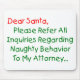 Estimado Papá Noel, Por Favor, Remitir Todas Las Consultas Sobre Comportamiento Raro A Mi Fiscal. El último regalo divertido de Navidad para niños y adultos - este es el clásico hilarante para vencer a todos los Queridos diseños de Santa. Graciosa y totalmente original, esta carta del abogado a Santa hace un gran regalo a los Navidades o podría ser algo divertido para mostrar por la oficina durante las vacaciones. Este es un original de Inside Out. Si lo viste en otro lugar, me lo robaron.