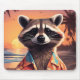 Raccoon gracioso vestido con una camisa hawaiana en una hermosa playa.