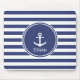 Alfombrilla De Ratón Rayas azules y blancas con el ancla