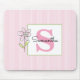 Alfombrilla De Ratón Rayas Rosadas Floral Monograma