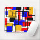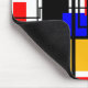 Esta almohadilla del ratón tiene un diseño Bauhaus de rectángulos y cuadrados con líneas negras que atraviesan el diseño en un campo de blanco.