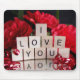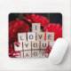 Palabra "Alegría" reflejada en un espejo con claveles.