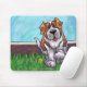 Desfile Animal Cute St. Bernard Perro Mousepad creado por Imagine That! El diseño presenta a nuestro encantador personaje de perro blanco y bronceado parado en un patio de césped con una valla de ladrillo rojo, un cielo azul texturado y una divertida frontera violeta pintada por Traci Van Wagoner, un talentoso artista de libros para niños. El cachorro divertido se pone en juego con una pata levantada. Este divertido arte mascota es perfecto para los amantes de los perros de St. Bernard y para los amantes del arte animal de todas las edades. En muchos de nuestros extravagantes productos de perrito St. Bernard, encontrarás este adorable cachorro que viene y va con la cara de un perro de San Bernardo, juguetón, y la cola de un perro gracioso del otro lado. Únete al Desfile de Animales y trae una sonrisa a la cara de alguien que amas con un regalo de nuestro lindo perro de San Bernardo. ¡Vaya!