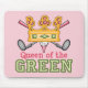 Una esmeralda linda y un diamante rosado jeweled la corona, un par de clubs de golf para mujer manejados rosados y una pelota de golf en una camiseta en las camisetas femeninas del golf, la ropa, la ropa, los efectos de escritorio y más mercancía que dice a la reina del verde. Un regalo lindo para un golfista, un coche del golf o los chicas femeninos golfing al equipo.