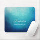 Almohadilla personalizada del ratón con un patrón de semimandala azul bonito con un color degradado de fondo de azul marino claro que se transforma en azul marino oscuro. Tranquilo y sereno.
