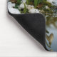 A robin gazes at its reflection in a small puddle, amidst a peaceful scene of delicate snowdrops and soft, white snow