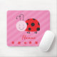 El mousepad personalizado que ofrece una mariquita roja con las flores rojas hermosas y rosa raya el fondo. Diseño lindo y de la diversión para el special para los chicas. Regalo conocido adaptable.