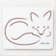Dibujo esquemático de un zorro rojo curvado, con la cabeza arriba y mirándote. **Nota** Apareciendo bajo el ilustracion de zorro rojo, es el término taxonómico "Vulpes vulpes"