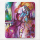 Escena de balcones de la tragedia de Romeo y Juilet por William Shakespeare. Pintura original contemporánea de acuarela con Relieve metalizado dorado y colores iridiscentes en color violeta brillante, rosa, verde, naranja amarillo, verde azulado, turquesa, blanco... Pintado por Bulgan Lumini (c)