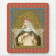 Ella nació Isabel Flores de Oliva en Lima, Perú, pero es más conocida como Santa Rosa de Lima, la primera santa nacida en las Américas. Según la tradición, un sirviente de la casa Flores soñó con un sueño en el que el rostro del bebé Isabel se transformaba en rosa. A partir de entonces, el apodo "Rosa" se quedó. Se hizo oficial en 1597, cuando tomó su nombre en su confirmación por el Arzobispo St. Toribio de Mogrovejo. Naturalmente, rosas de todas las variedades se han convertido en su atributo. En el arte, la representan coronada de rosas (como aquí), sosteniendo rosas, o en un ambiente con rosas en macetas o arbustos rosas floridos. + ¿Prefiere un fondo de color sólido? Borre la imagen de patrón y vea la postal de la paleta de color para obtener recomendaciones. + Crédito de la imagen (BK 020): Imagen antigua de San Rosa de Lima de una huella devocional cromolitográfica de finales del siglo XIX con acentos dorados (Serie Dominicana, No. 10), publicada originalmente por B. Kühlen, en Mönchengladbach, Alemania, de la colección privada de ephemera religiosa del diseñador. + Festín: 23 de agosto