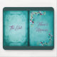 Un libro de estilo victoriano con un bonito diseño de desplazamiento y adornado con rosas rosados y violetas sobre un fondo verde azulado con un ligero aspecto de textura. Muy bonito. Personalice si lo desea.