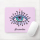 Un ojo místico de todo ver en tonos de azul de lavanda rosada Verde azulado sobre una almohadilla de ratón rosa claro. ¡Ardiendo con pestañas que parecen rayos de luz! ¡Personalízalo!